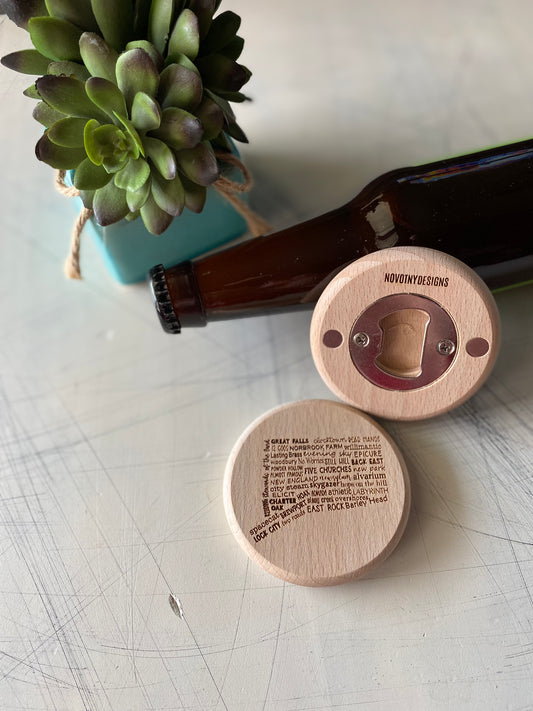 Connecticut breweries - magnetic wood bottle opener