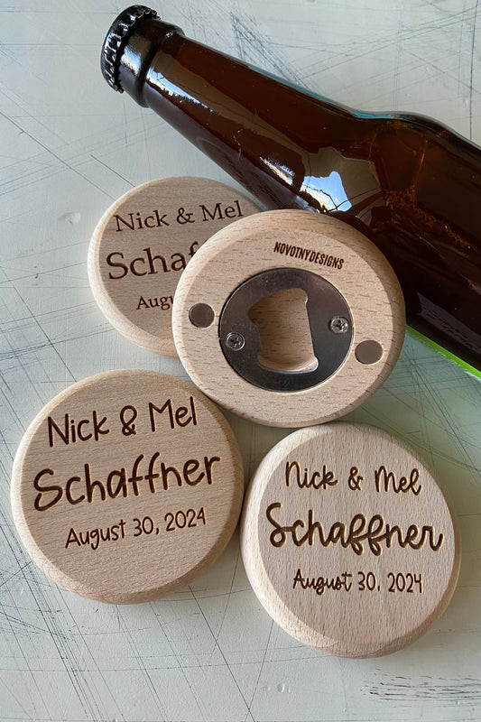 Custom wedding favors - engraved wood bottle opener