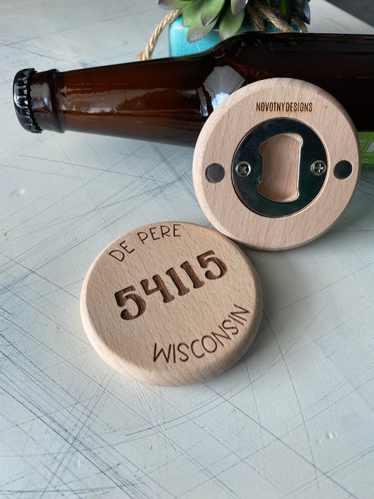 Customized zip code and city wood bottle opener