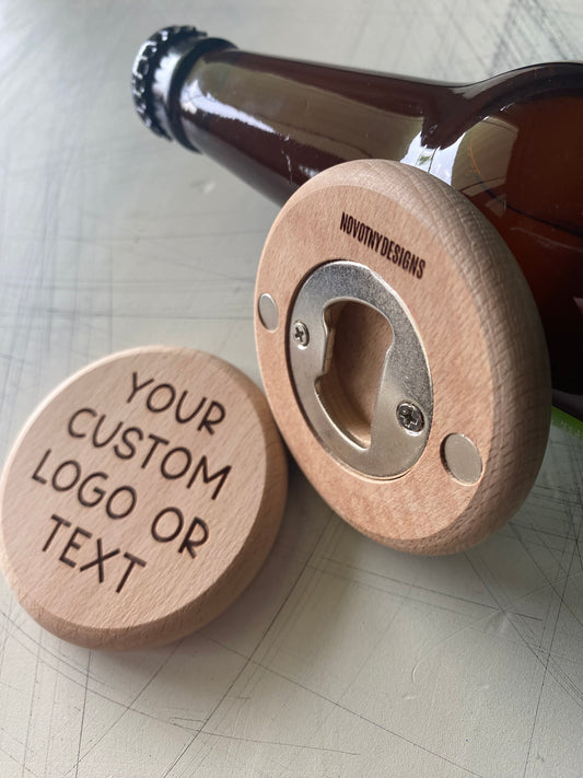 Customizable engraved wood bottle opener