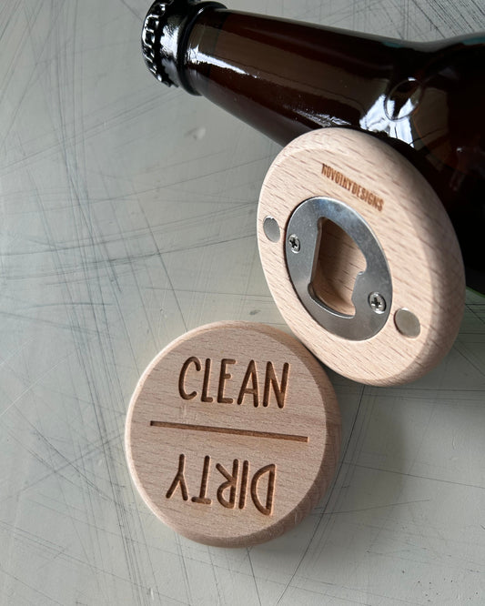 Clean/Dirty - magnetic wood dishwasher magnet and bottle opener