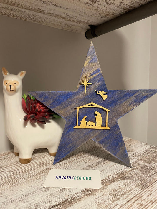 Navy and Natural Nativity double-sided ornament - 3 inch round