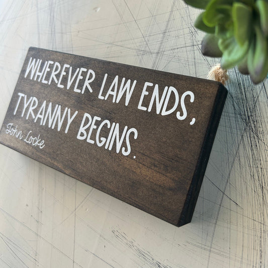Wherever law ends, tyranny begins. - John Locke - mini wood sign