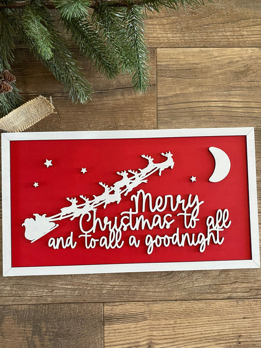 Merry Christmas to all and to all a goodnight - red 3D Santa scene framed wood sign